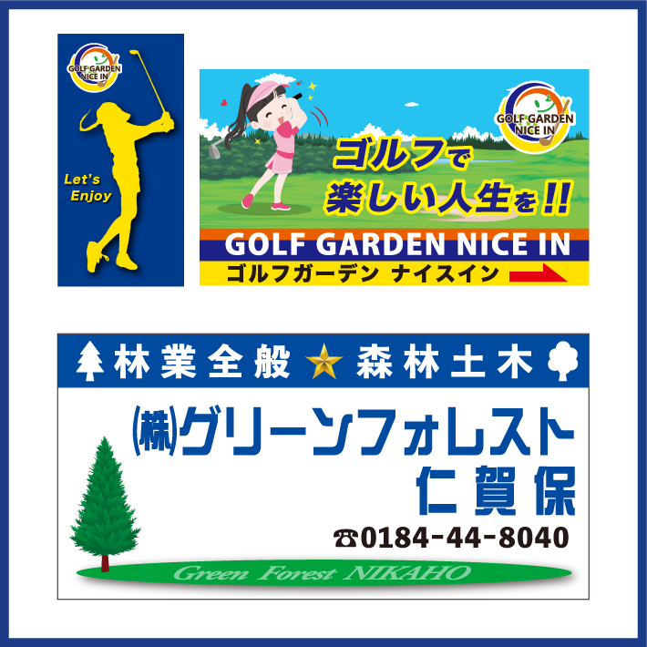 工事に関係する各種看板のほか、 店舗看板や屋外 ・ 屋内サインも特注にて製作いたします。